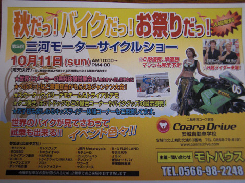 こんな催しが安城自動車学校でやるくさいとの情報をゾノからいただく。