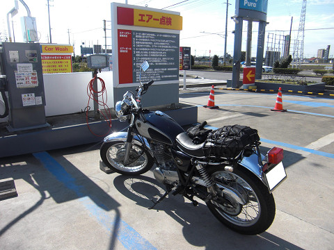 ちょっと空気圧調整しようと試みるも、後輪の穴にうまいぐあいに機器が入らず断念。_ト ̄|○