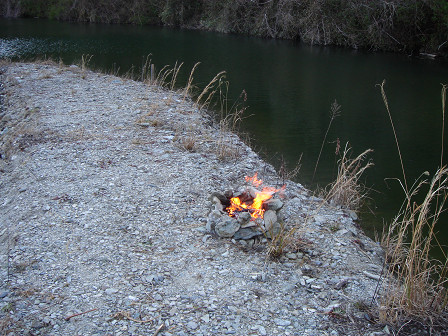 合間に水辺にちょこんと生えていた枯れ草に火をつけたのが焚き火との出会いか。